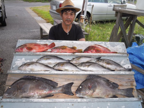 | コロダイ55㎝ 1,5㎏ 2枚 イサキ39㎝~35㎝ 0,8㎏~0,5㎏ 6枚 アカハタ35㎝~30㎝ 0,7㎏~0,4㎏ 3枚 | |