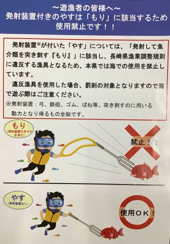 ~遊漁者の皆様へ~ 発射装置付きの「やす」は使用禁止です | 長崎県