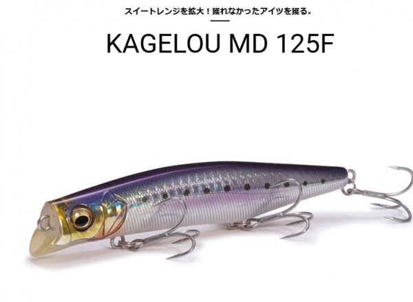 圧倒的な攻撃領域を持ち、タフな状況になるほど優れた釣獲性能を発揮するリップレスミッドダイバーがKAGELOU MD 125Fです。