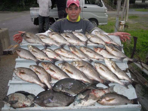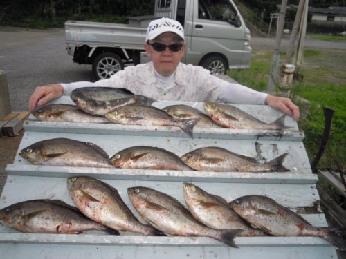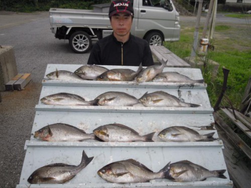 | ①グレ43㎝ 1,2㎏ イサキ41㎝~34㎝ 1,0㎏~0,5㎏ 23枚 ②イサキ40㎝~35㎝ 1,0㎏~0,4㎏ 14枚 ③イサキ42㎝~37㎝ 1,1㎏~0,7㎏ 12枚 | |
