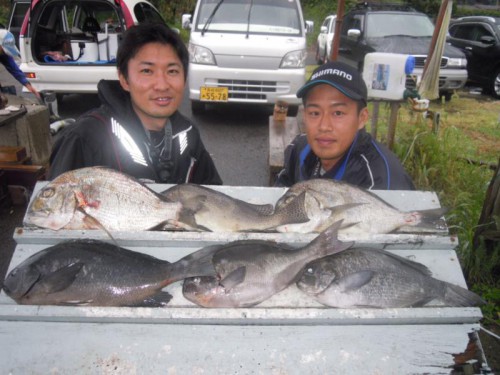 | ①グレ48㎝~42㎝ 1,8㎏~1,1㎏ 6枚 ②グレ48㎝~43㎝ 1,7㎏~1,3㎏ 3枚 へダイ47㎝と43cm 1,5㎏と1,3㎏ 2枚 コロダイ43cm 1,3㎏ 1枚 | |