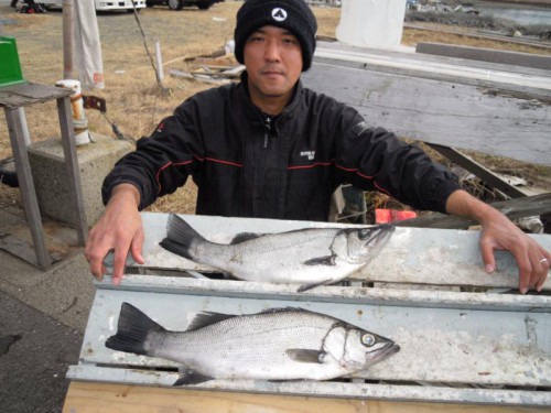 ①ヒラスズキ55㎝と50㎝ 1,5㎏と1,0㎏